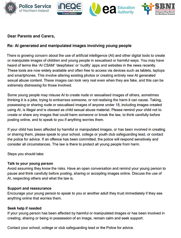 For any parents, guardians and carers, the below guidelines have been put together to advise on what to do if your child is affected by harmful or manipulated images. Hopefully it never happens, but if it's needed, help is available.