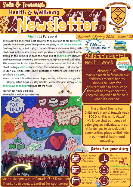We are delighted to share our latest Health & Wellbeing Newsletter, focusing on playing, training and exercising with medical conditions. We hope this will be will he helpful, and if you know anyone who is affected by asthma, diabetes or high blood pressure, feel free to share with them. The tips and advice will be relevant for all types of exercise, not just hurling. Thanks to our H&W subcommittee for the research and material.