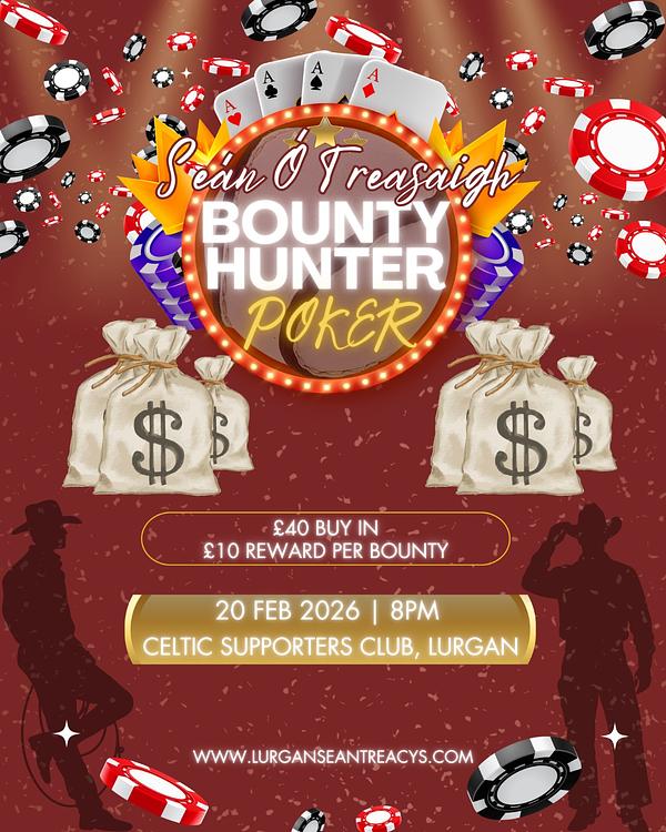 Our next poker night will be on the 20th of February. The venue is different, we'll be in the Celtic Supporters Club this time, but the rules remain the same. ยฃ40 buy in and ยฃ10 reward per bounty. Everyone is welcome, so spread the word!