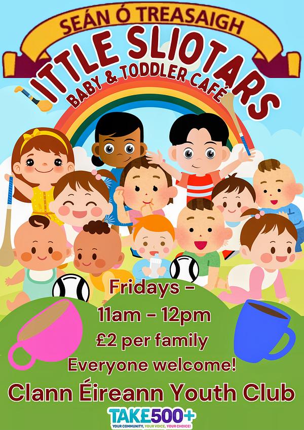 Little Sliotars Baby and Toddler Café returns from the mid-term break this Friday, 11-12 in Clann Éireann Youth Club . As always, everyone is welcome, so if you know anyone who might be interested, spread the word and tell them to drop in for a cuppa and some giggles.