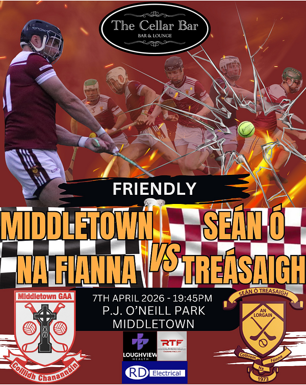 Our senior team made great use of a bye week in the Ulster Hurling League by playing a friendly in Middletown last night. It was a chance for Mark Magee to test the full ability of the squad at his disposal. Everyone got a bit more game time under their belts against a very strong Middletown team. With plenty of positives to take and a few seasonal debuts handed out there is plenty to think over ahead of the McCormack Cup starting up next Tuesday against St Malachy's. Thanks to Middletown for the game, and good luck for the season ahead.
