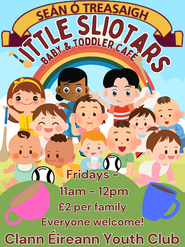 Little Sliotars Baby and Toddler Café returns tomorrow after the Easter break. Bring the little ones down to Clann Éireann Youth Club at 11am for a runaround and a bit of fun. Everyone is welcome, so spread the word to anyone you think might be interested.