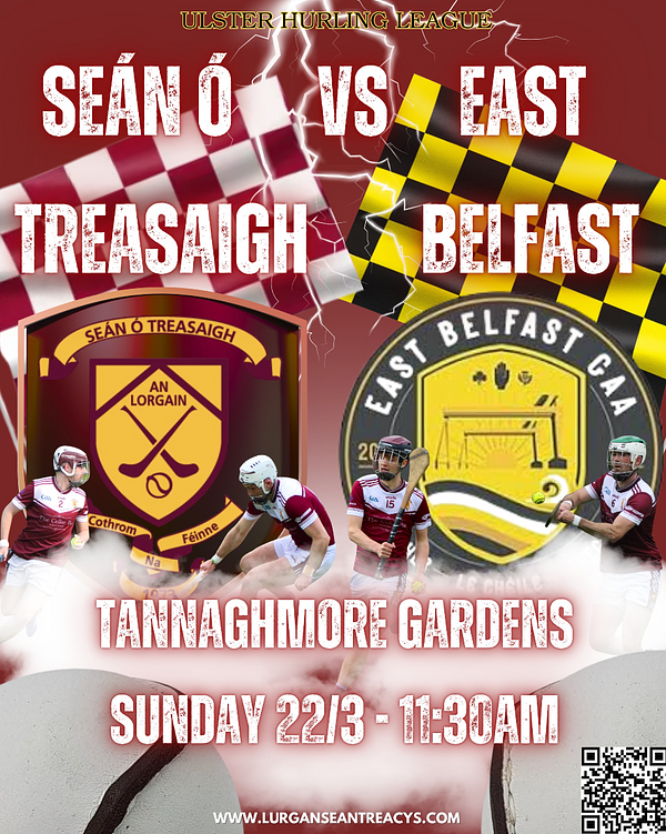 Our seniors get their season underway this Sunday, taking on East Belfast in the Ulster Hurling League. Throw in is at 11:30am in Tannaghmore Gardens, so call down and cheer them on!
