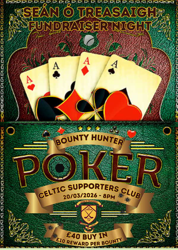 Reminder for tomorrow's Bounty Hunter Poker night. 8pm start in the Celtic Supporters Club. Spread the word to anyone you think might be interested. Big rewards available for whoever has the nerve and the skill!